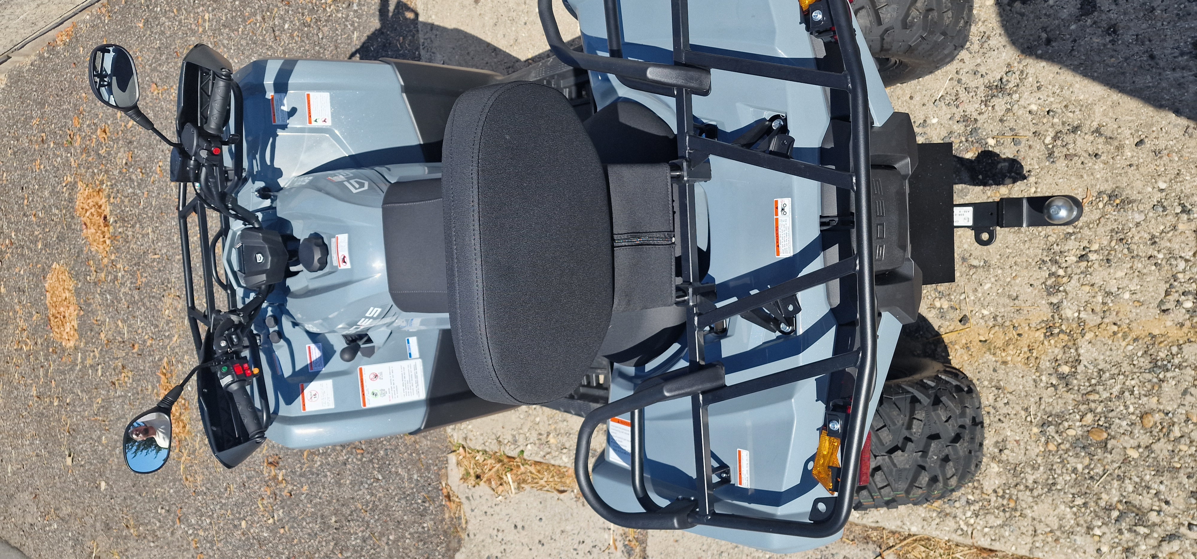 Lano navijáku operuje bezpečně v horizontálních a vertikálních rolnách, navíc je tento technický prvek dobře chráněn předsunutým rámem. Ovládání navijáku je elektronické z řídítek stroje.