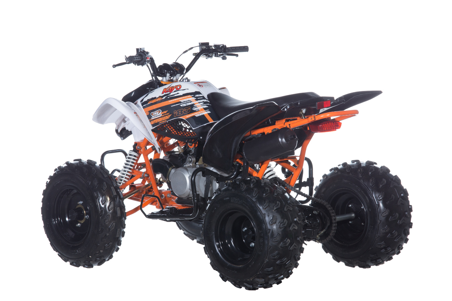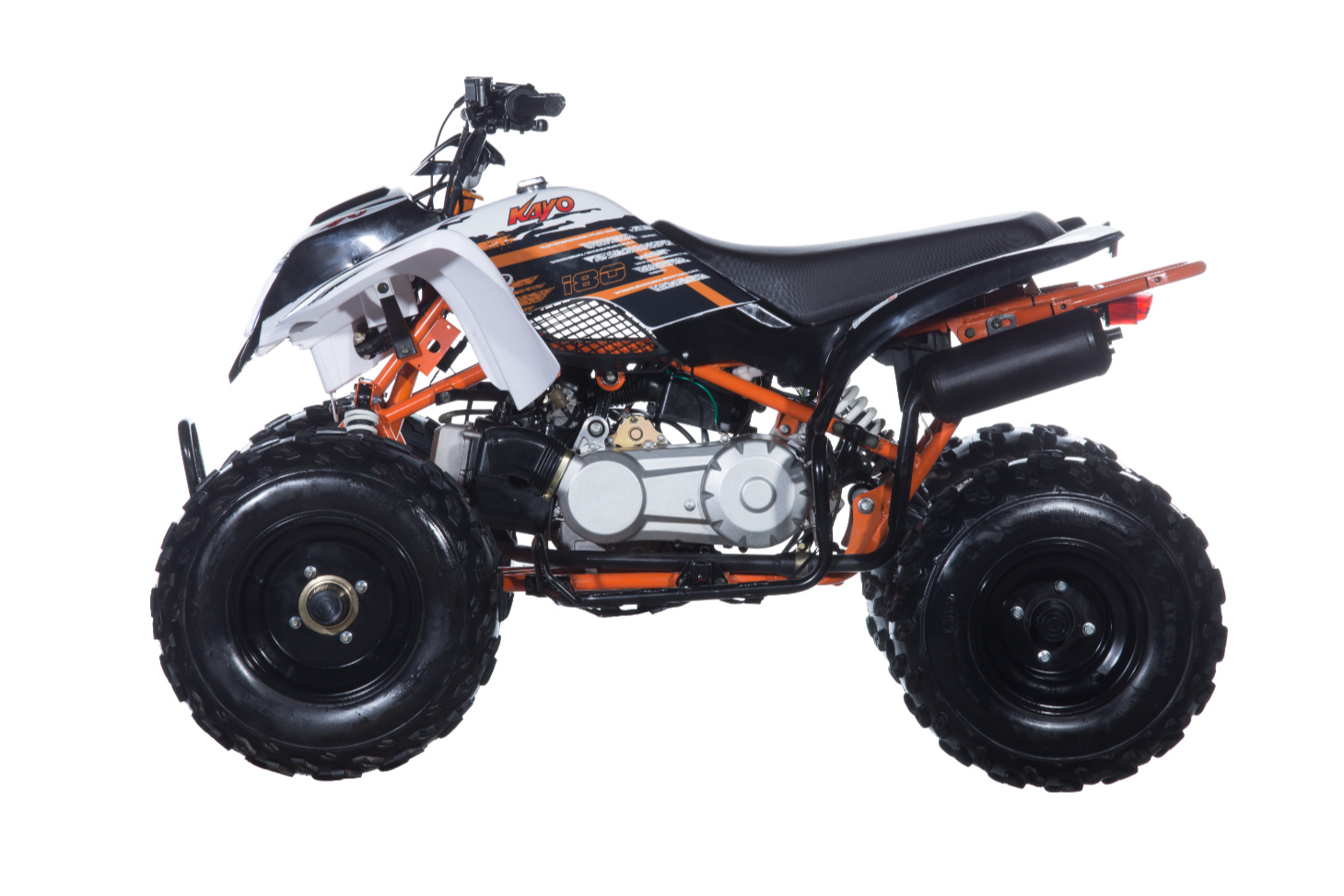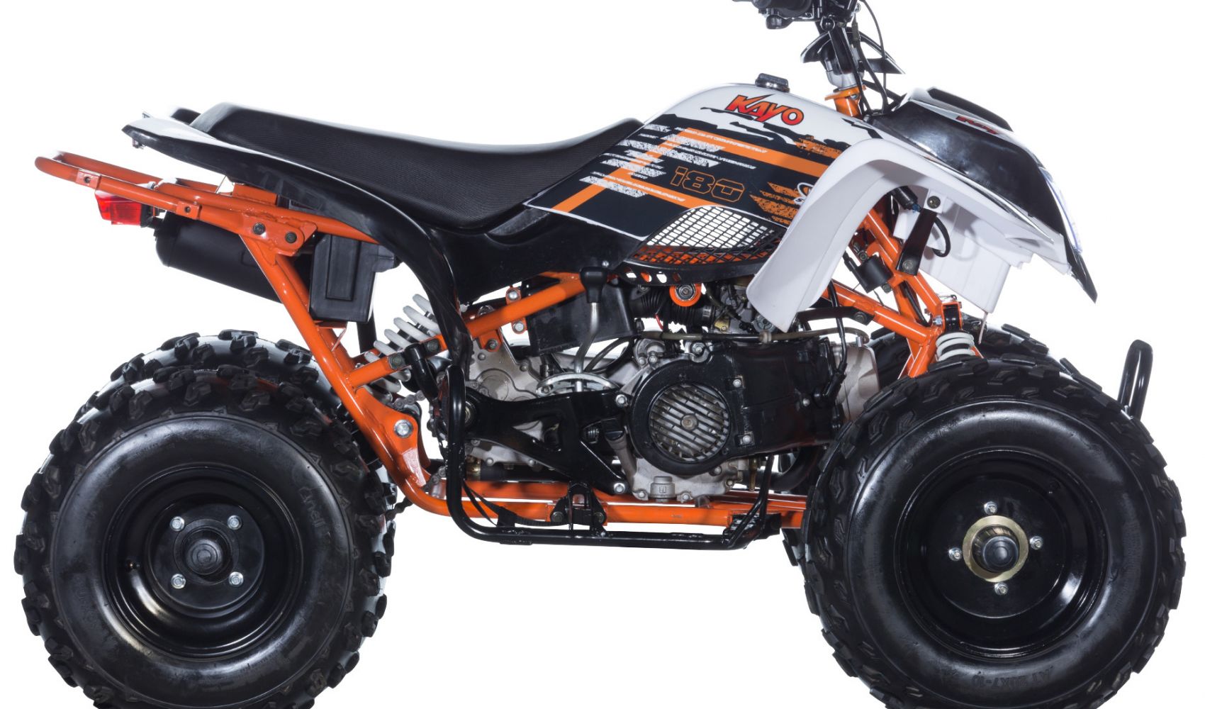 Motor je vybaveným spolehlivým elektrickým startérem a automatickou, zcela bezúdržbovou, převodovkou. Sportovní juniorská čtyřkolka disponuje kvalitním odpružením a zavěšením a spolehlivými diskovými brzdami. Kayo 180 Sport ve své kategorii vyčnívá i moderním designem s vkusnou barevnou kombinací.